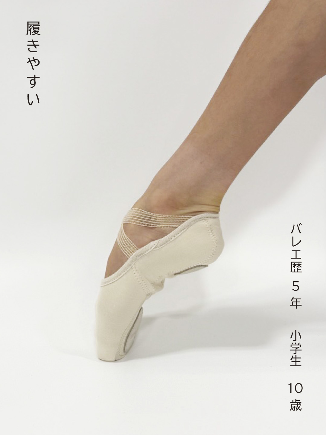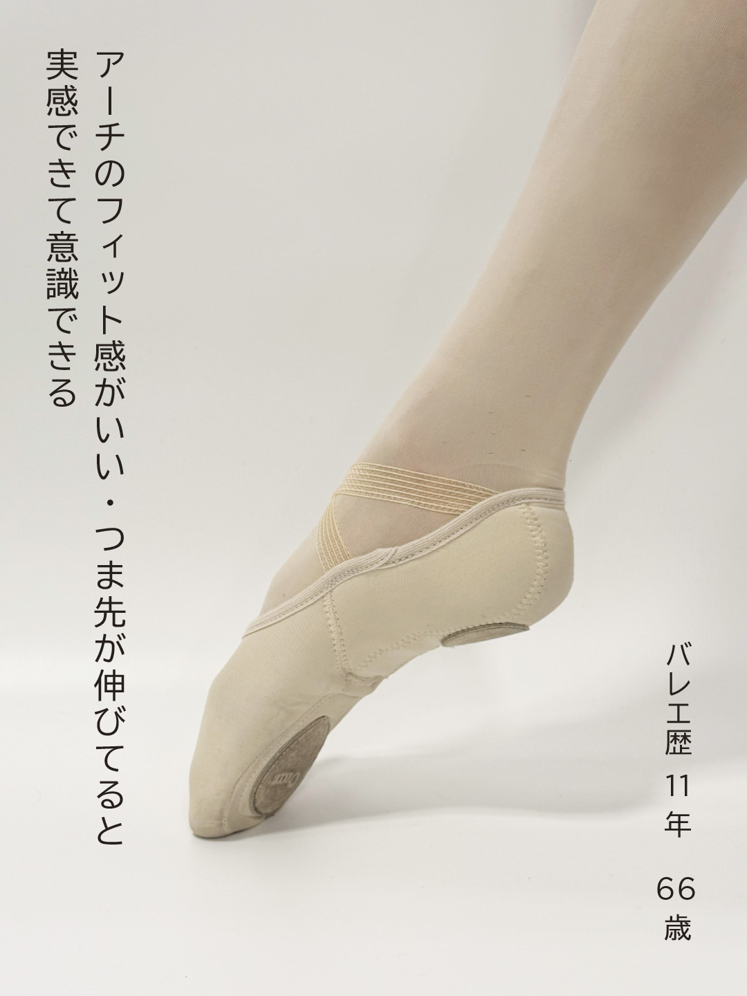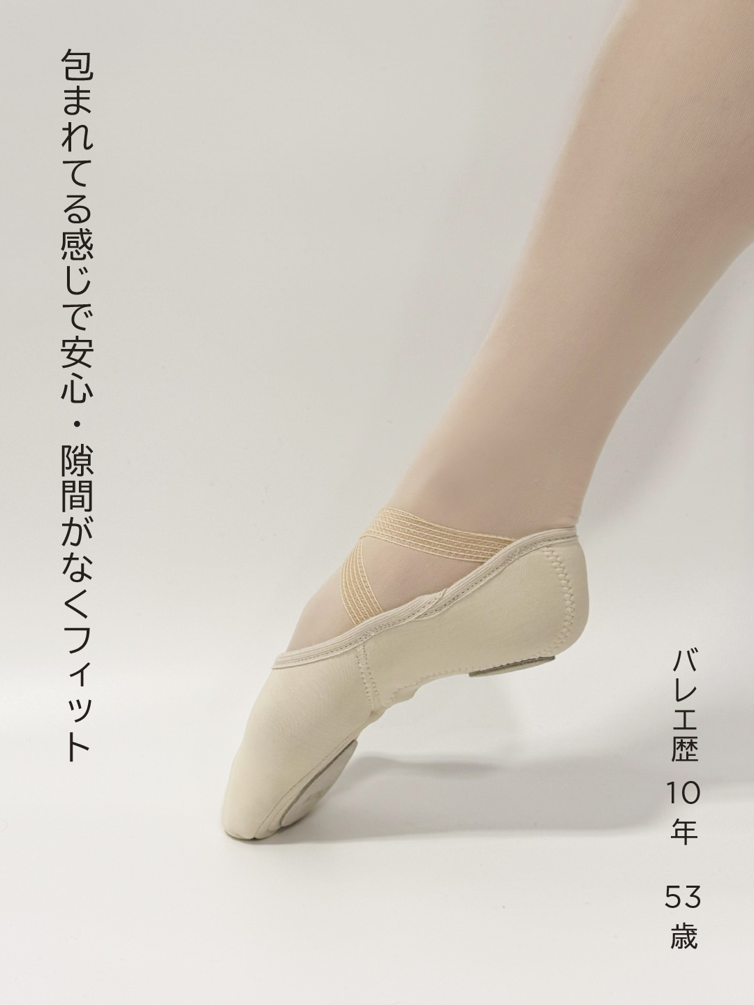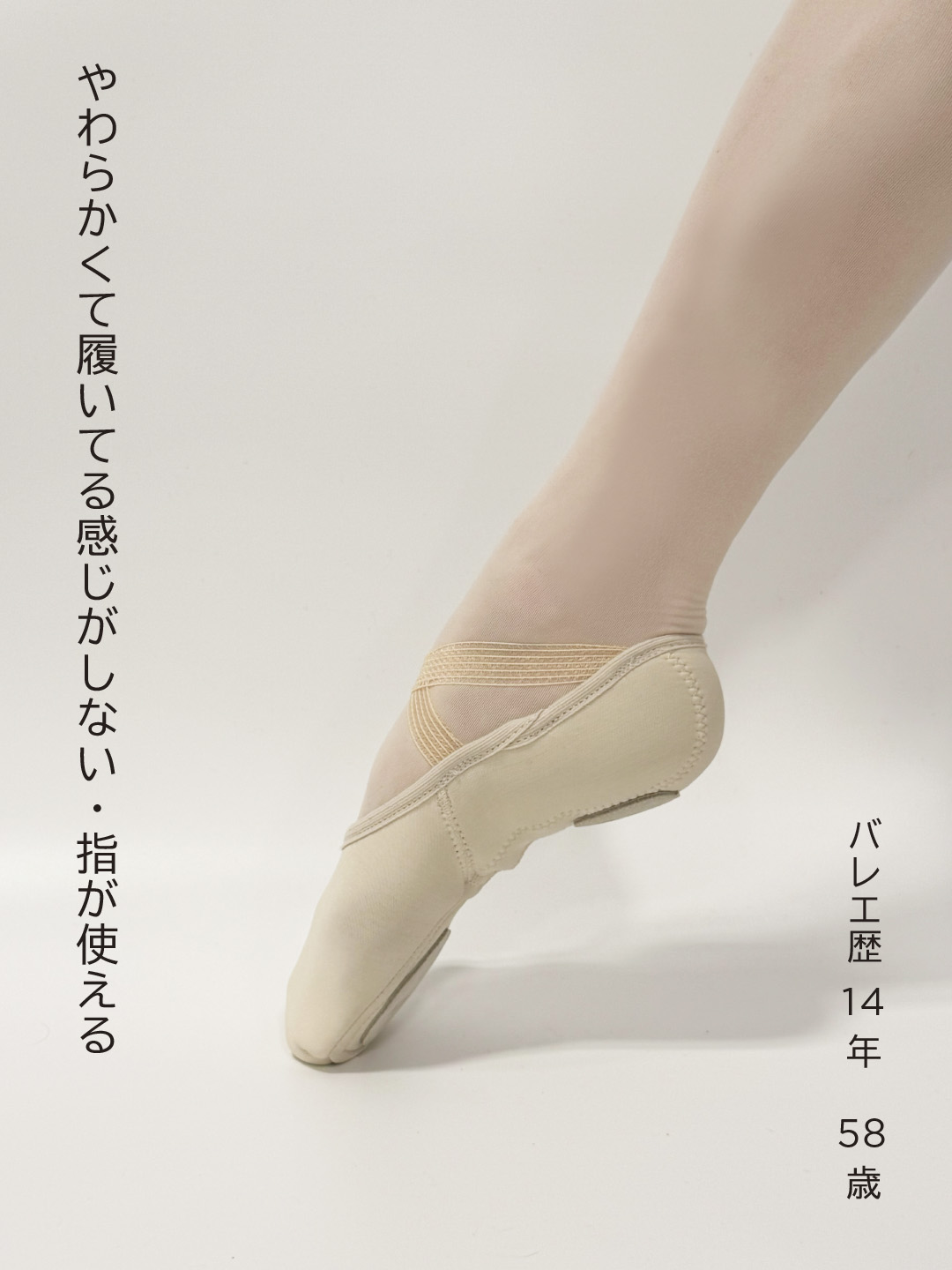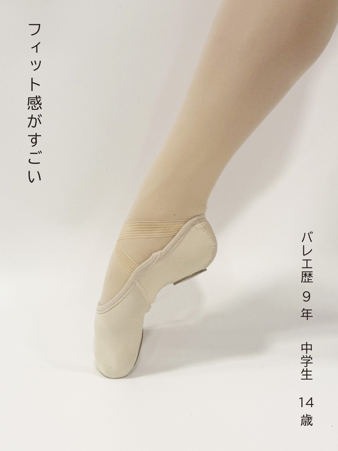 「ストレッチが効いていてもズレないバレエシューズ」を