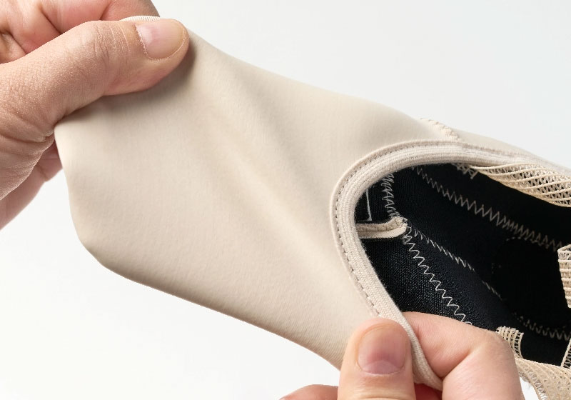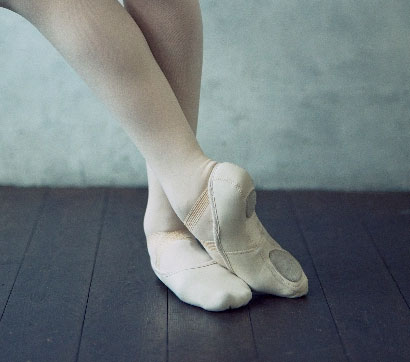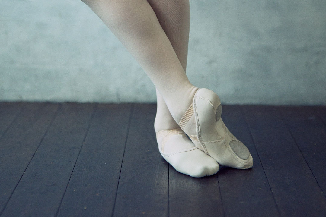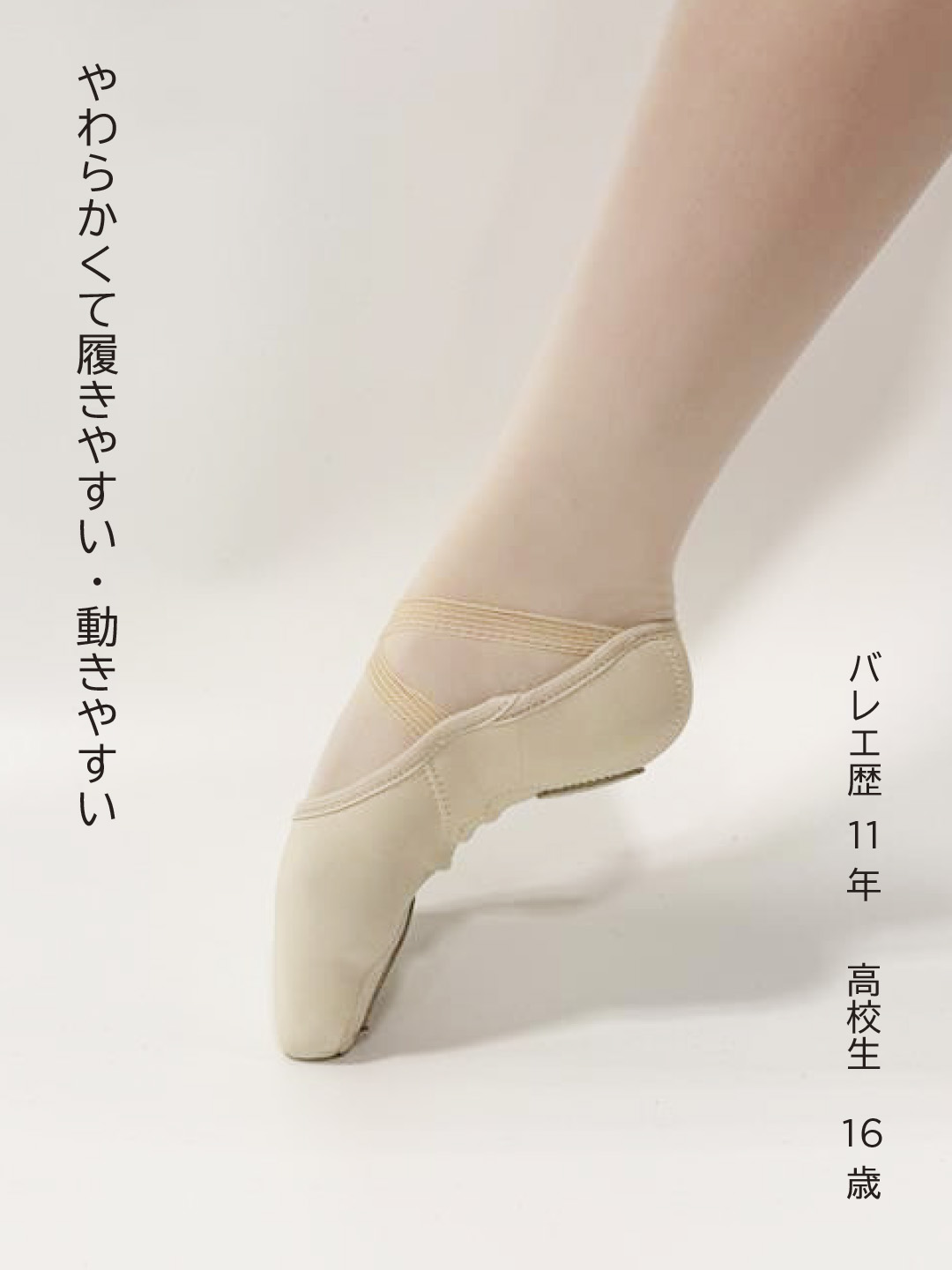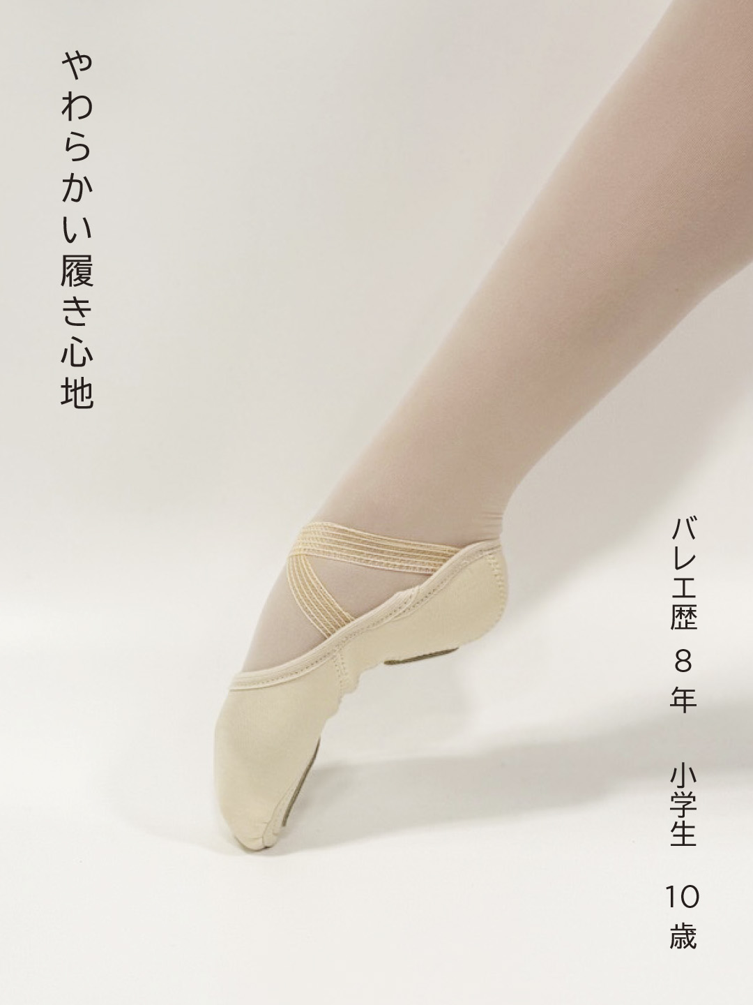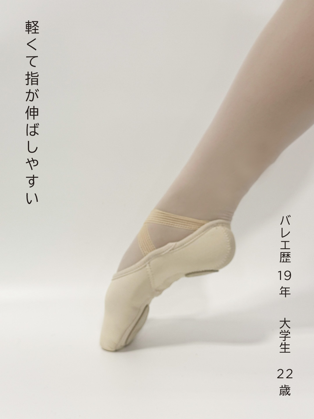 「ストレッチが効いていてもズレないバレエシューズ」を